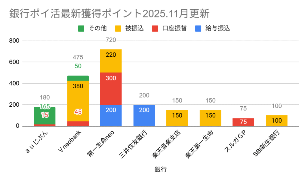 第一生命NEOBANKとV NEOBANKが圧倒的にポイント獲得に貢献しています。