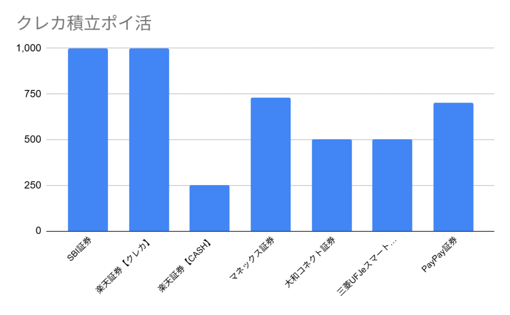 SBI証券と楽天証券が圧倒的にポイント獲得に貢献しています。